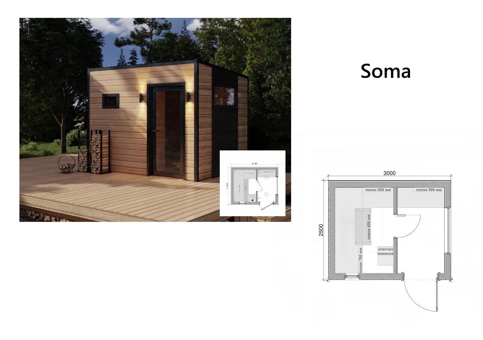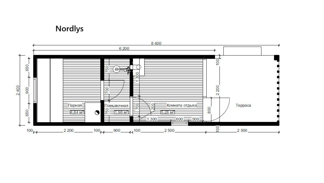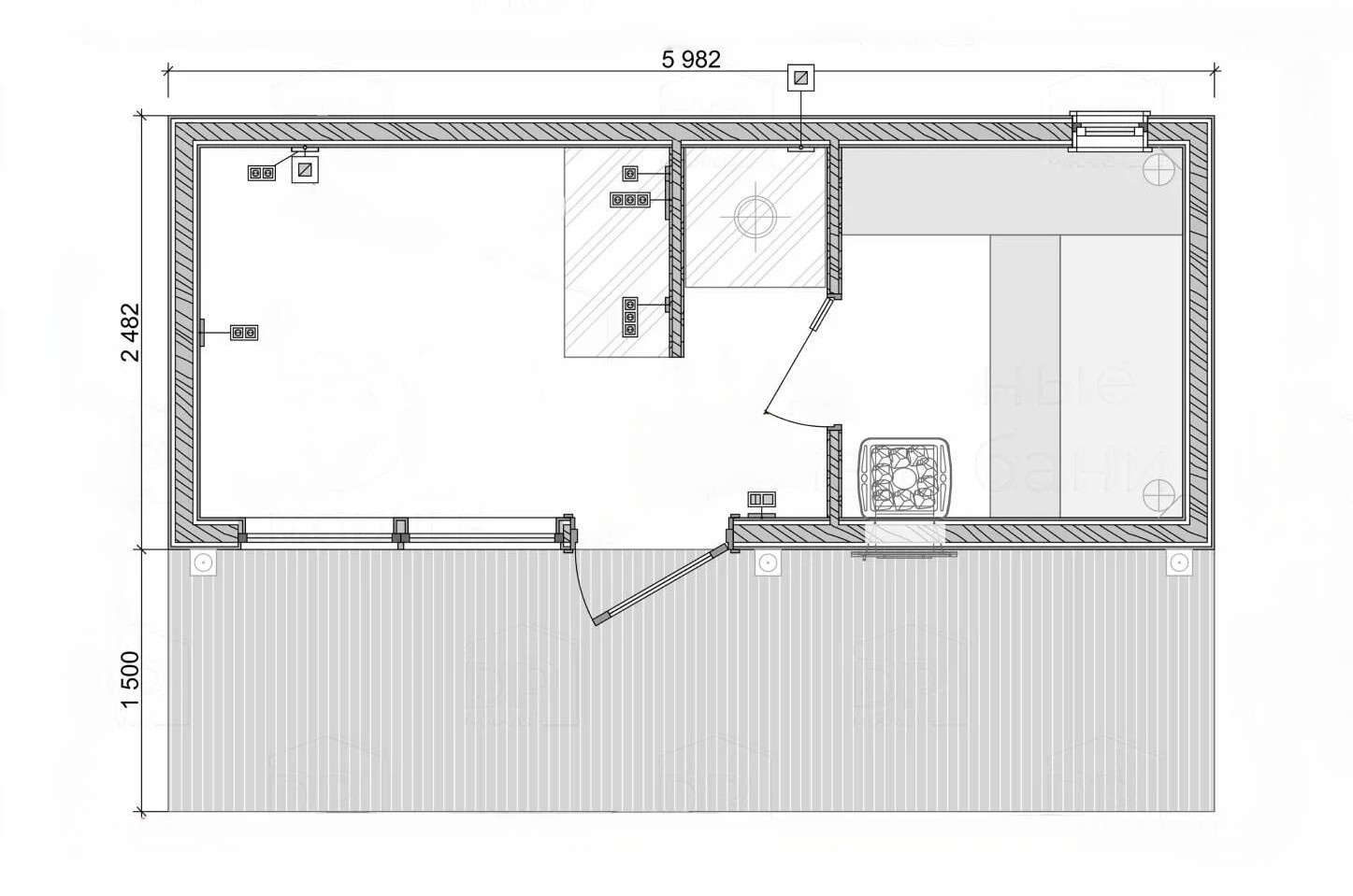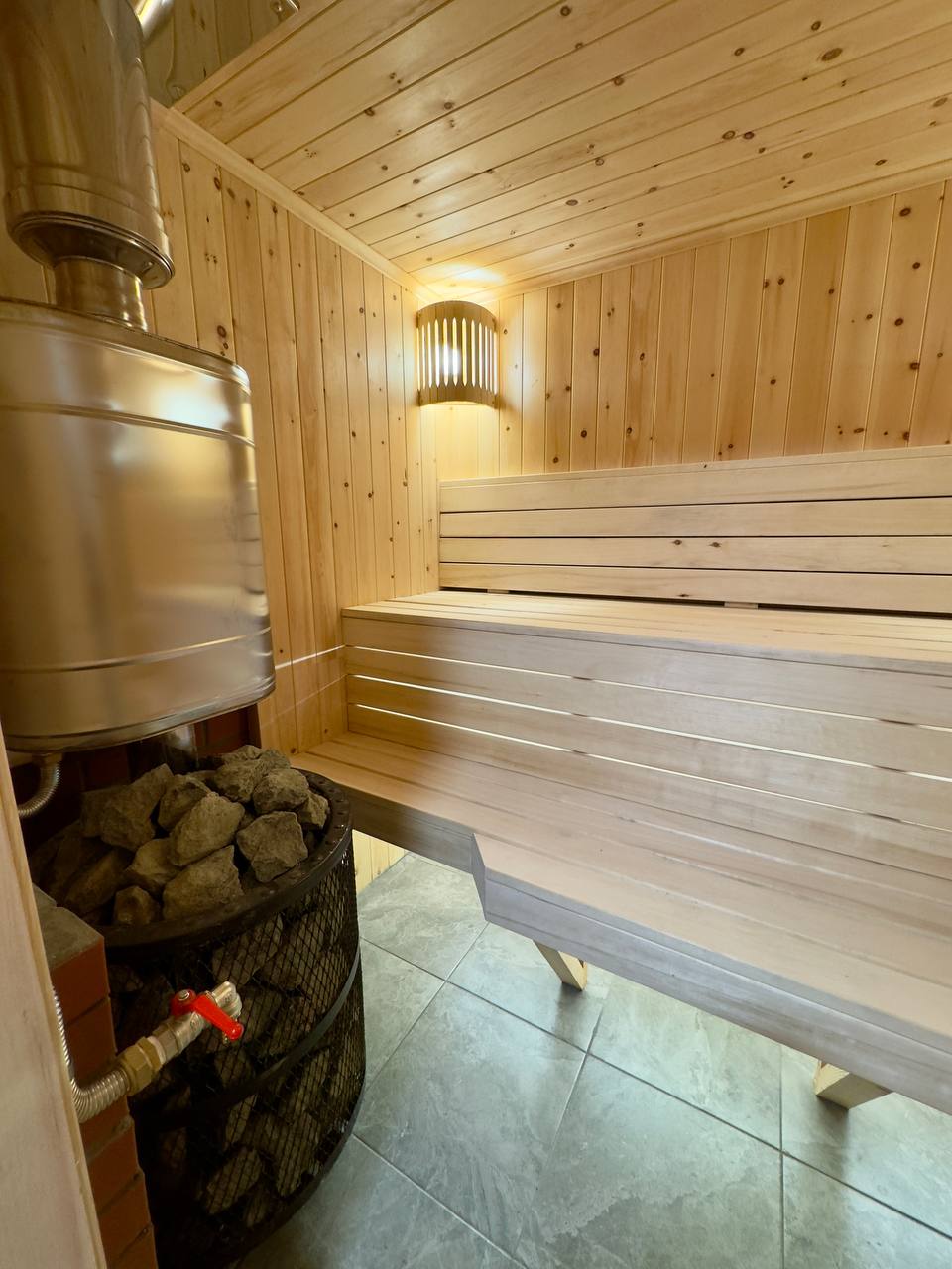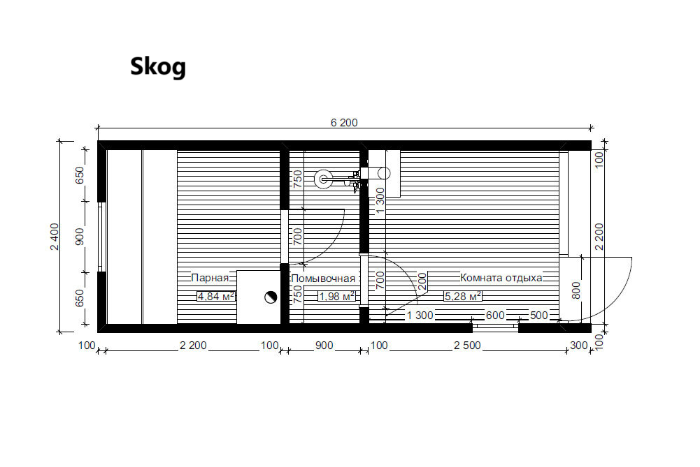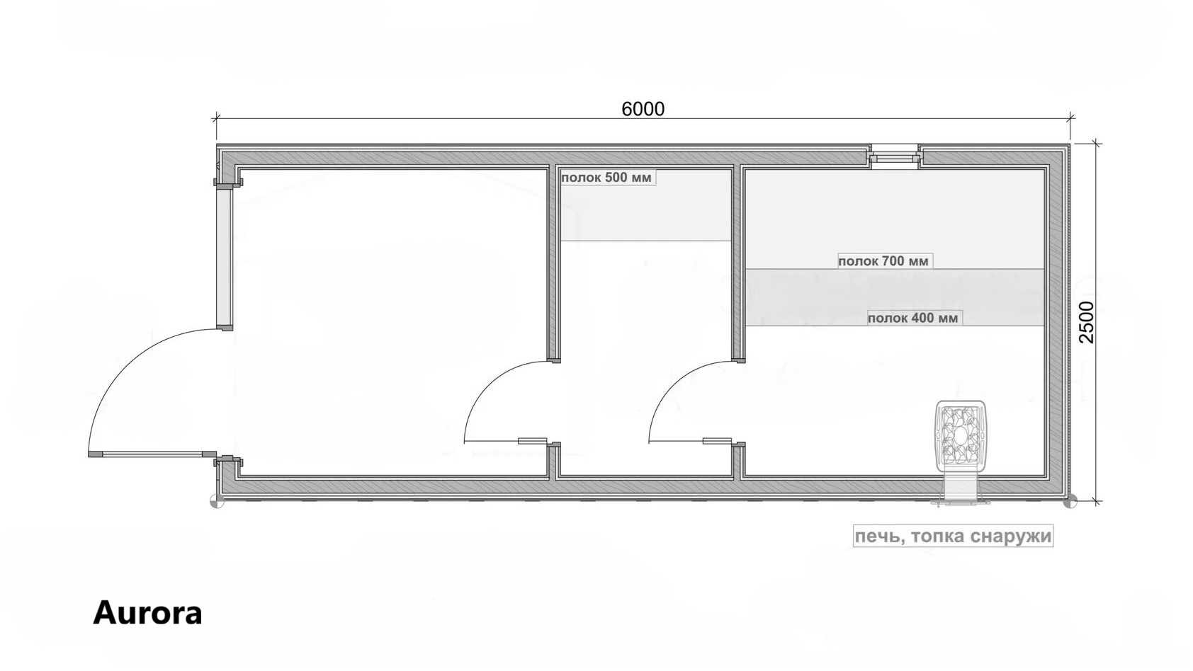 - Парная — основное пространство с продуманным размещением полков (400 / 500 / 700 мм)