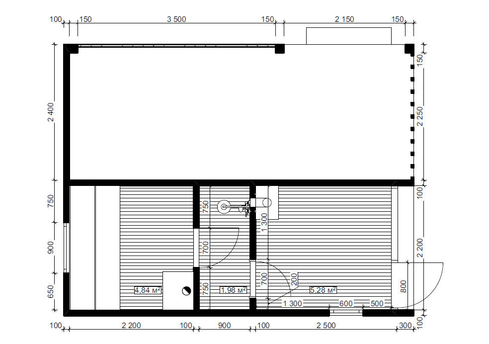 - Входная зона / тамбур — изолированная, с местом для переодевания