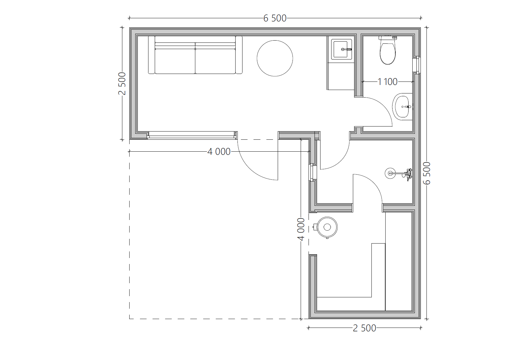 - Основной объём: 6,5 × 2,5 м