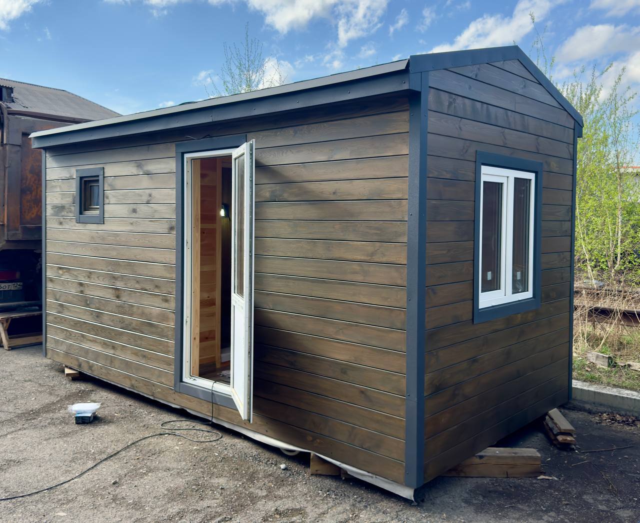Модульная баня собирается на производстве, а не на участке. Это значит — чистая технология, контроль качества на каждом этапе и отсутствие сюрпризов, которые так часто возникают при классическом строительстве.