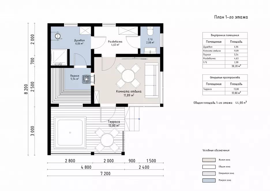 Продолжение внутреннего пространства. Используется как зона отдыха, охлаждения и летних сценариев.