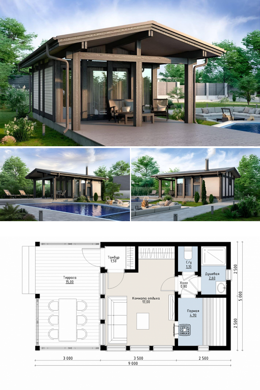 Проект хорошо подходит как для частного загородного участка, так и для инвестиционных задач (гостевая баня, аренда, загородный клуб).