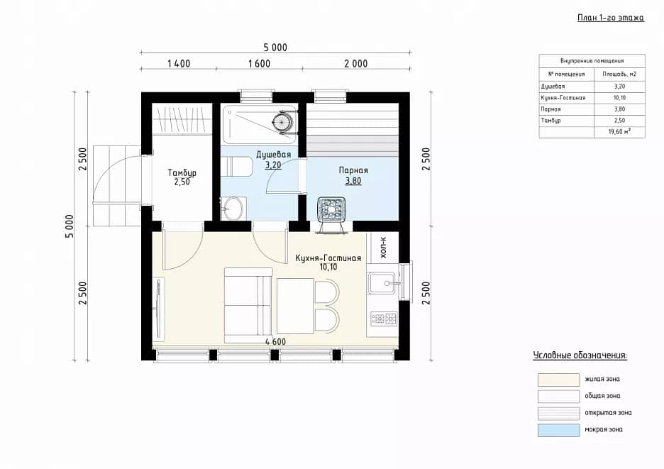 - Габариты по пятну застройки: ~5,0 × 5,0 м