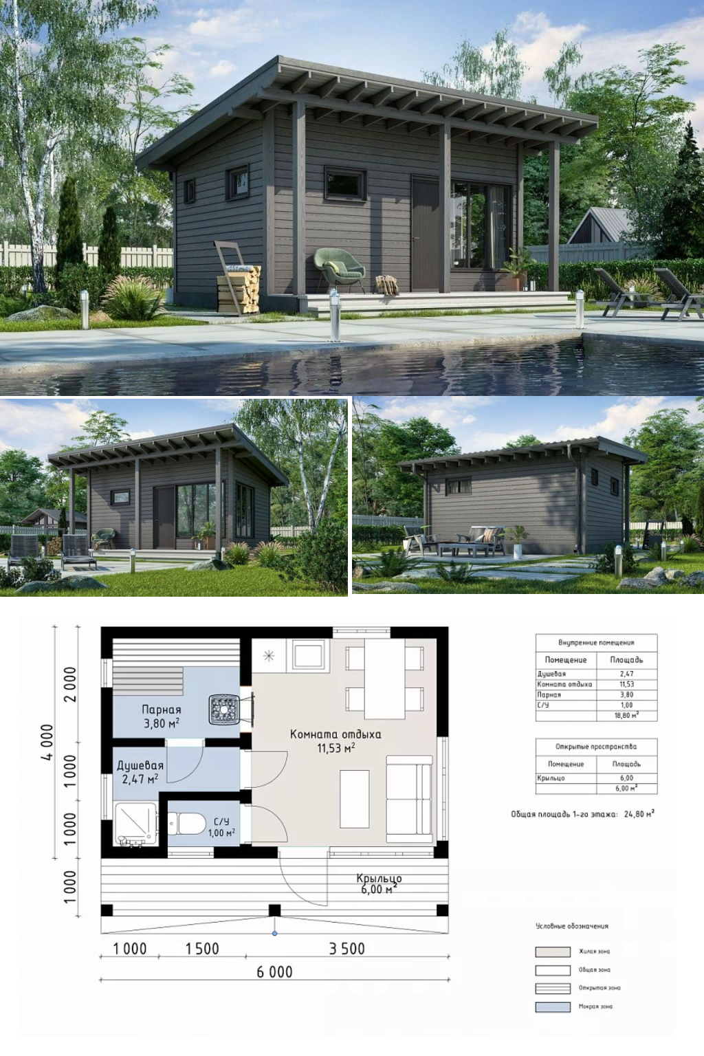 - Габариты по пятну застройки: ~6,0 × 4,0 м