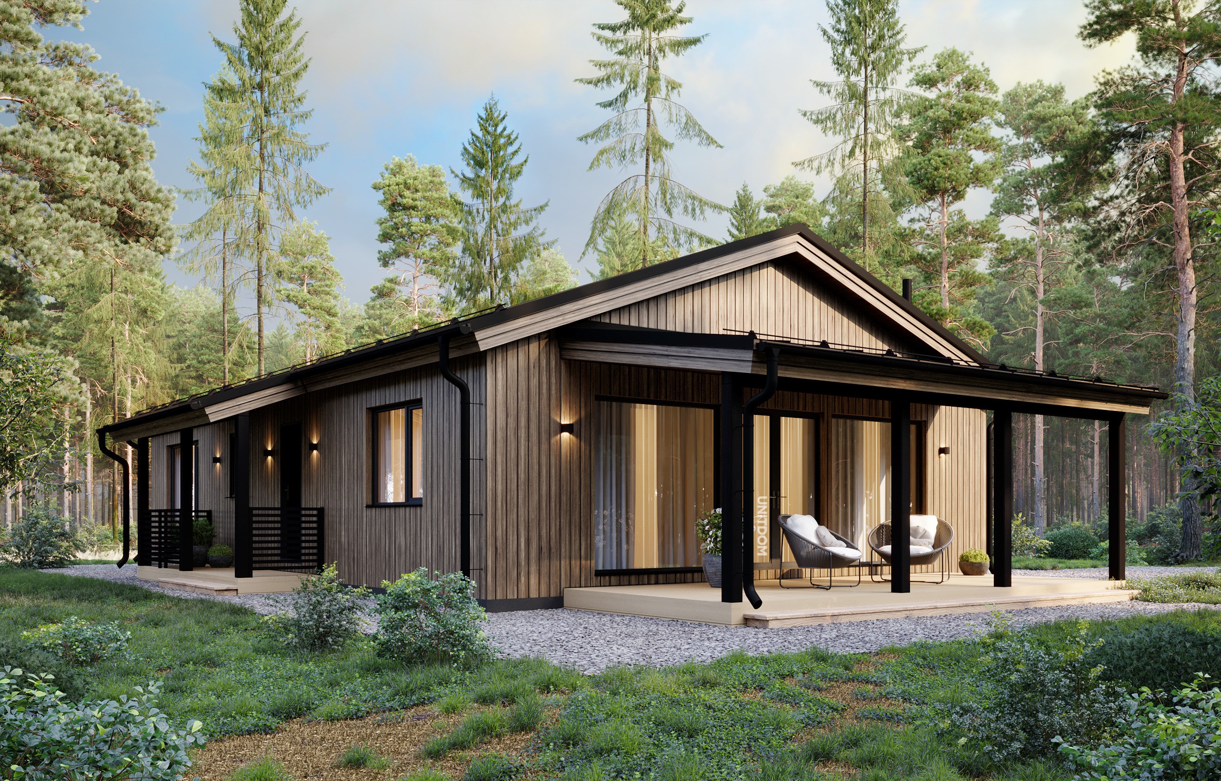 «ФЬОРД» — это скандинавская сдержанность: чистая геометрия, вытянутый силуэт, много естественного света и правильные пропорции. Дом выглядит современно, но не “кричит” — он про спокойную уверенность и ощущение собранного, тёплого пространства.