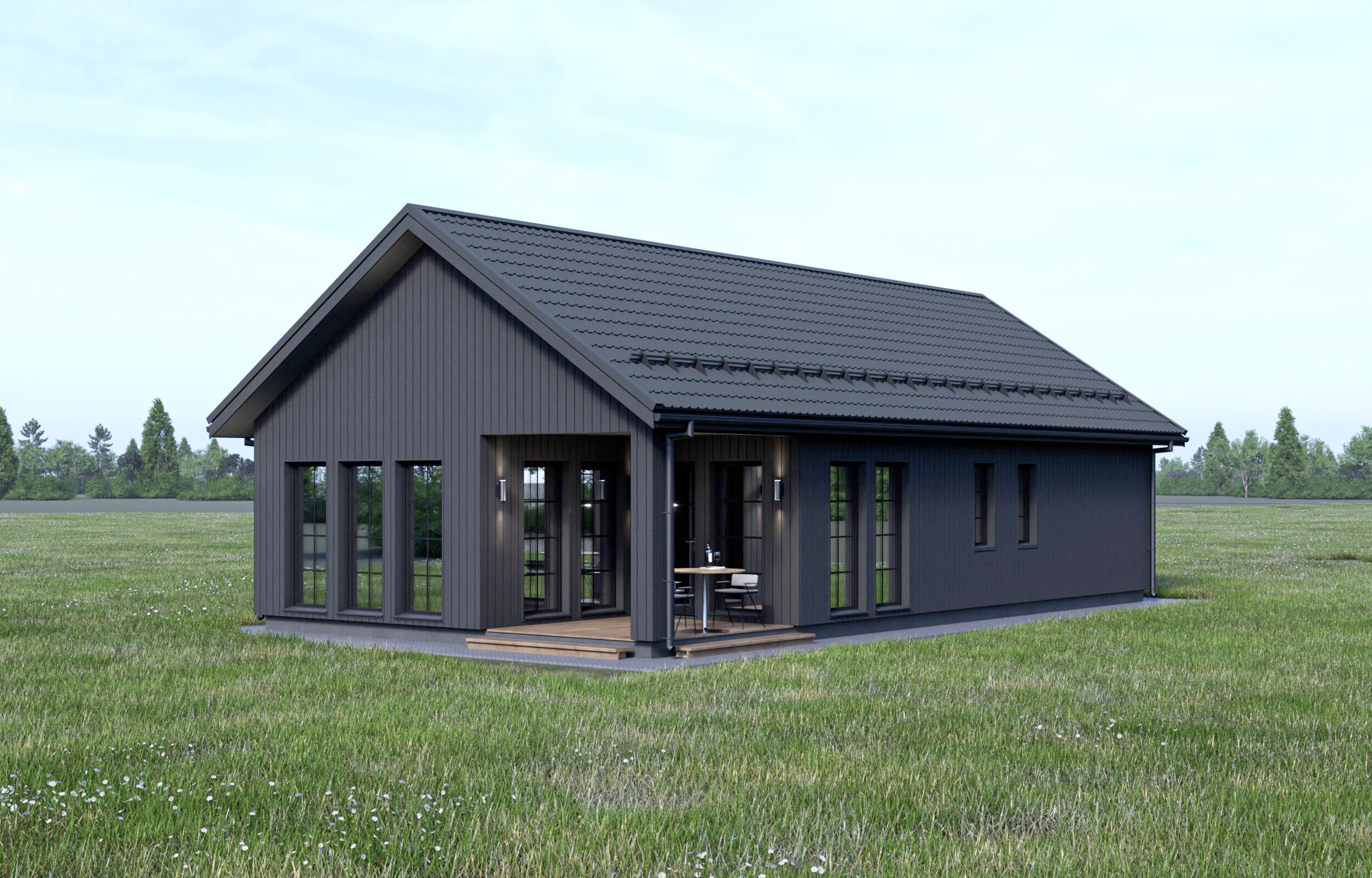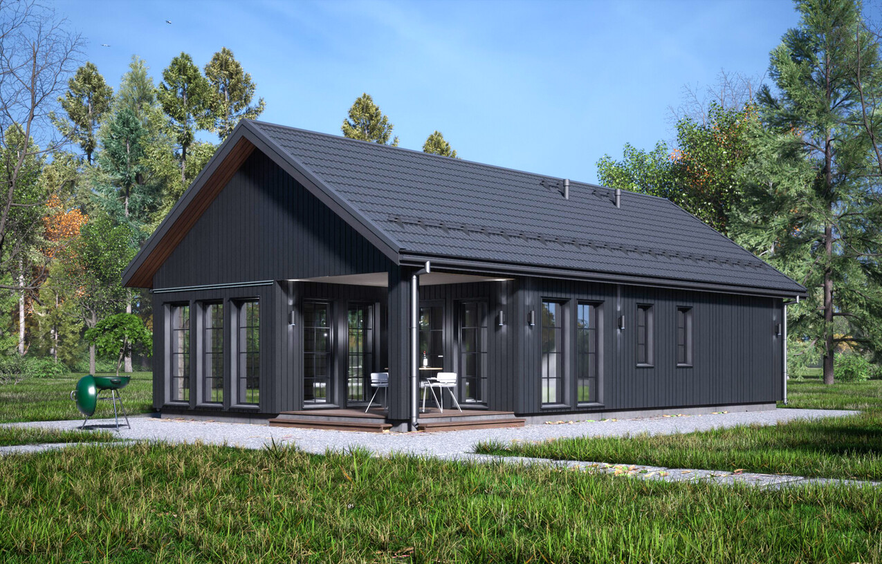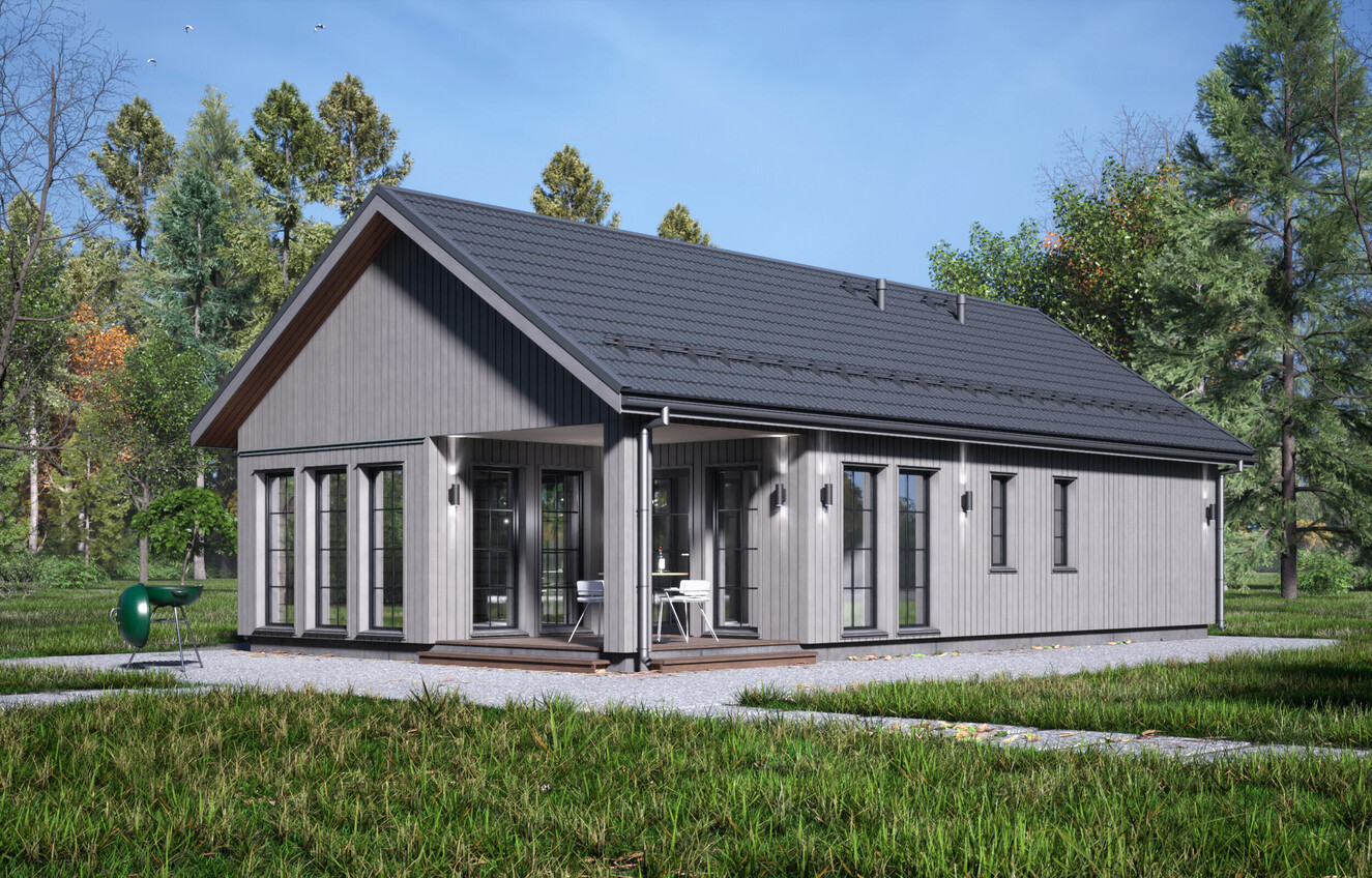 «Канти» — это одноэтажный каркасный дом в скандинавской эстетике, спроектированный как функциональное и светлое пространство для комфортной загородной жизни круглый год.