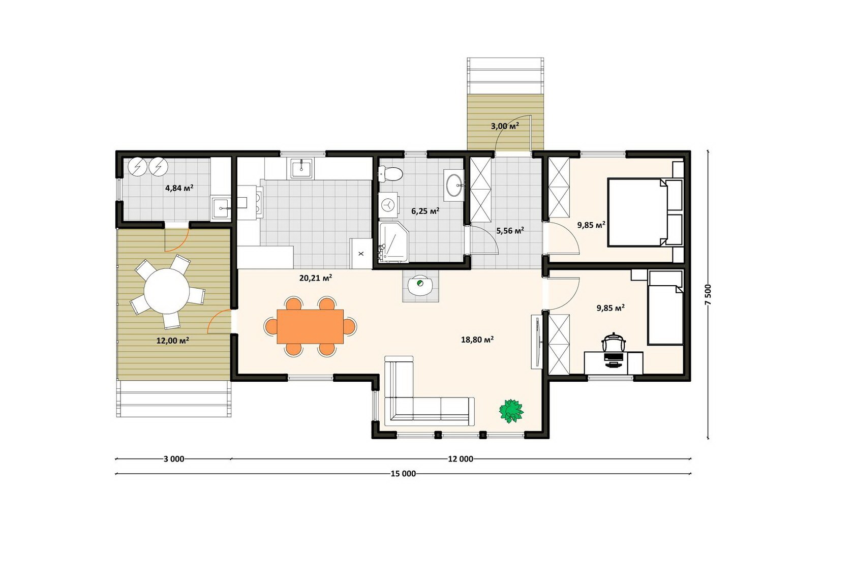 - Крыльцо — 3,0 м²