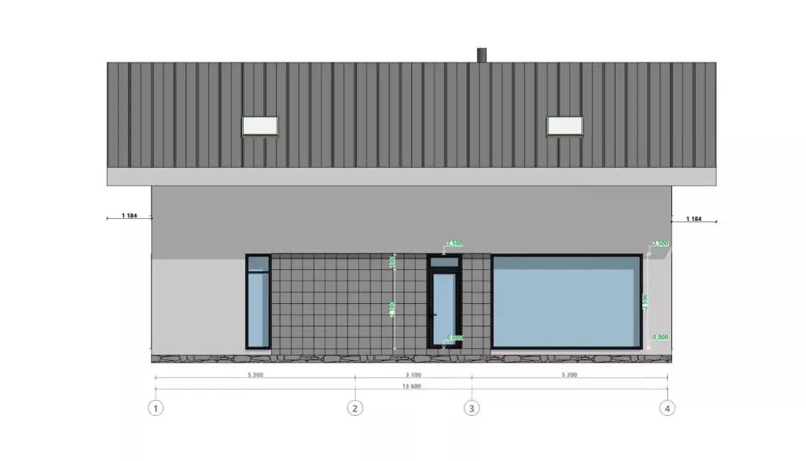 Главный фасад решён через панорамное остекление, которое: